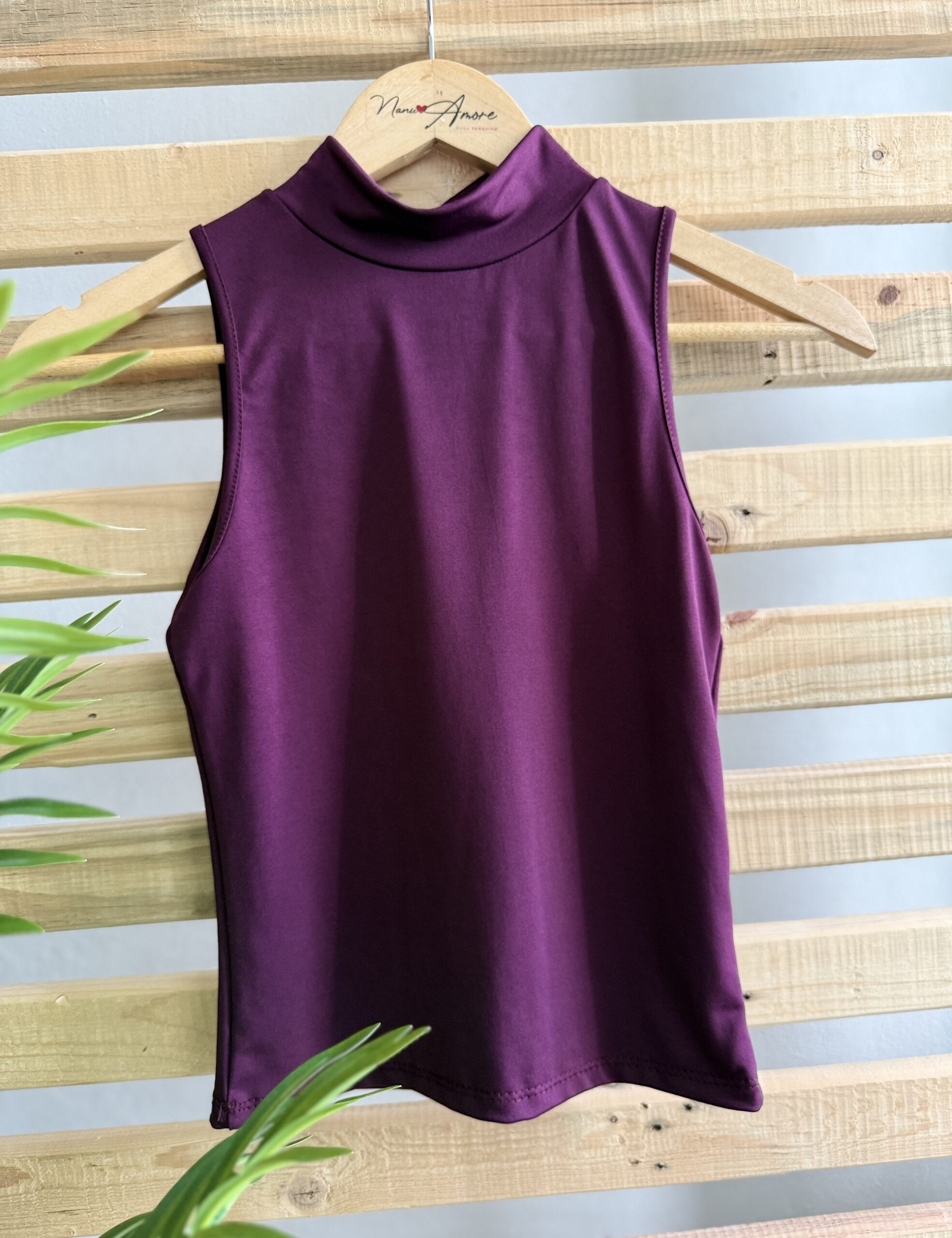 Musculosa Lula, con cuello medía polera de microfibra.Modelo al cuerpo ideal para talle S.